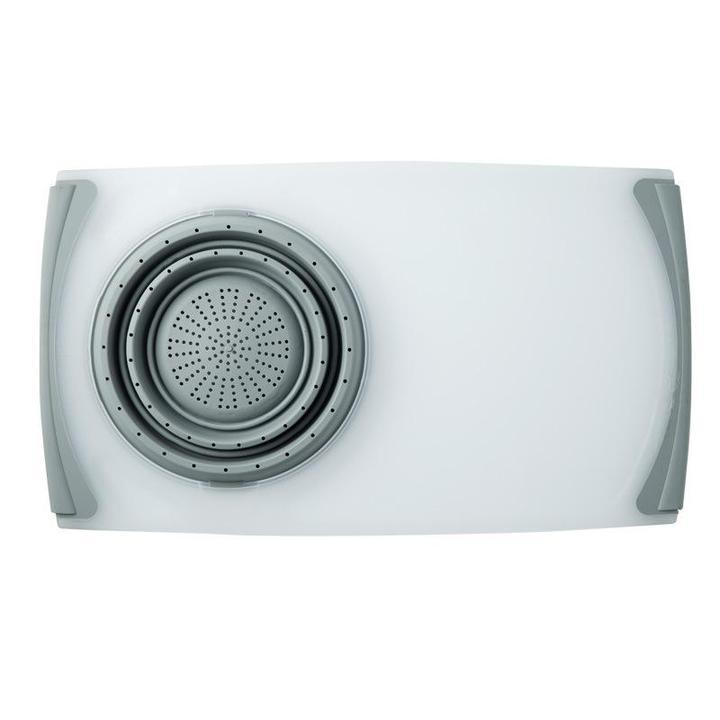 This Kitchen Plastic Chopping Board is made of PP+TRP, matte + silica gel. It's safe and secure. The cutting board is easy to clean - the silicone drainage basin with even leaking hole quickly removes any excess liquids so your chopping board stays clean. The thickened board is also durable and easy to manoeuvre. This large-sized cutting board can be used to chop fruit and vegetables with a flat surface.